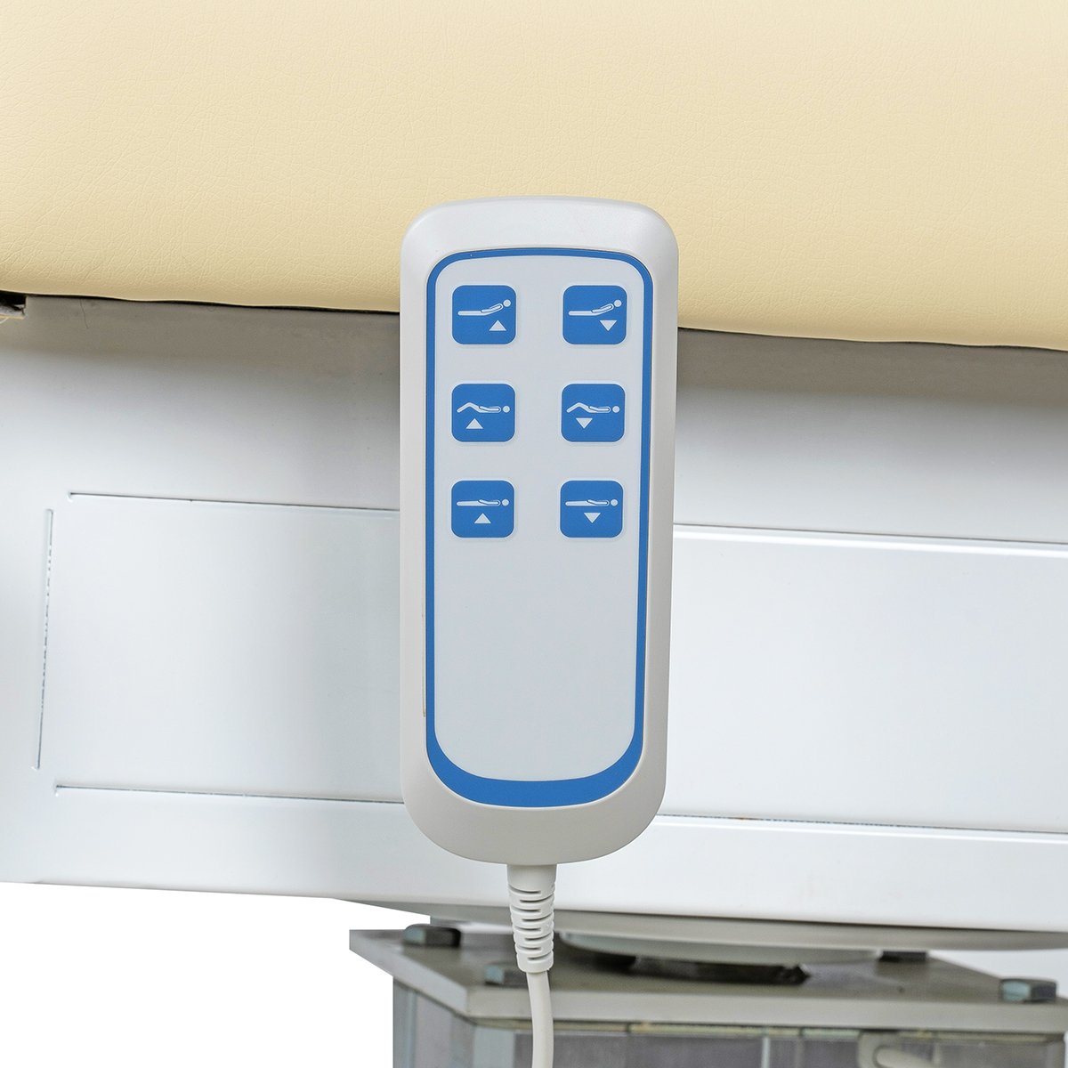 Три электромотора позволяют быстро и без усилий настроить высоту, угол наклона спинки и икроножной секции, а удобный поворотный механизм, позволяет регулировать поворот кресла под удобное положение.