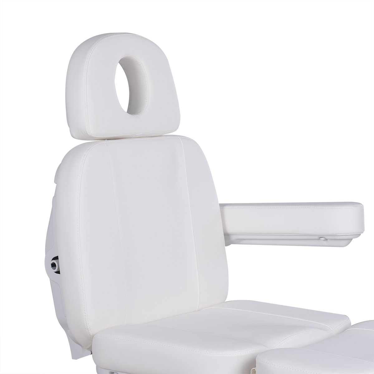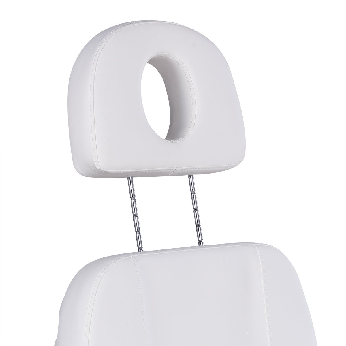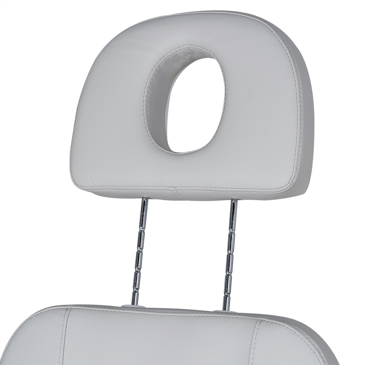 Подголовник со съемной подушкой и отверстием для лица — подходит не только для косметологии, но и массажа, а съёмные и синхронно регулируемые подлокотники поддержат руки в естественном положении в течении всей процедуры. Подножная часть съёмная и регулируемая, что удобно для уходовых процедур и массажа ног. Функция подогрева спинки и сиденья — эффект расслабления и полного релакса