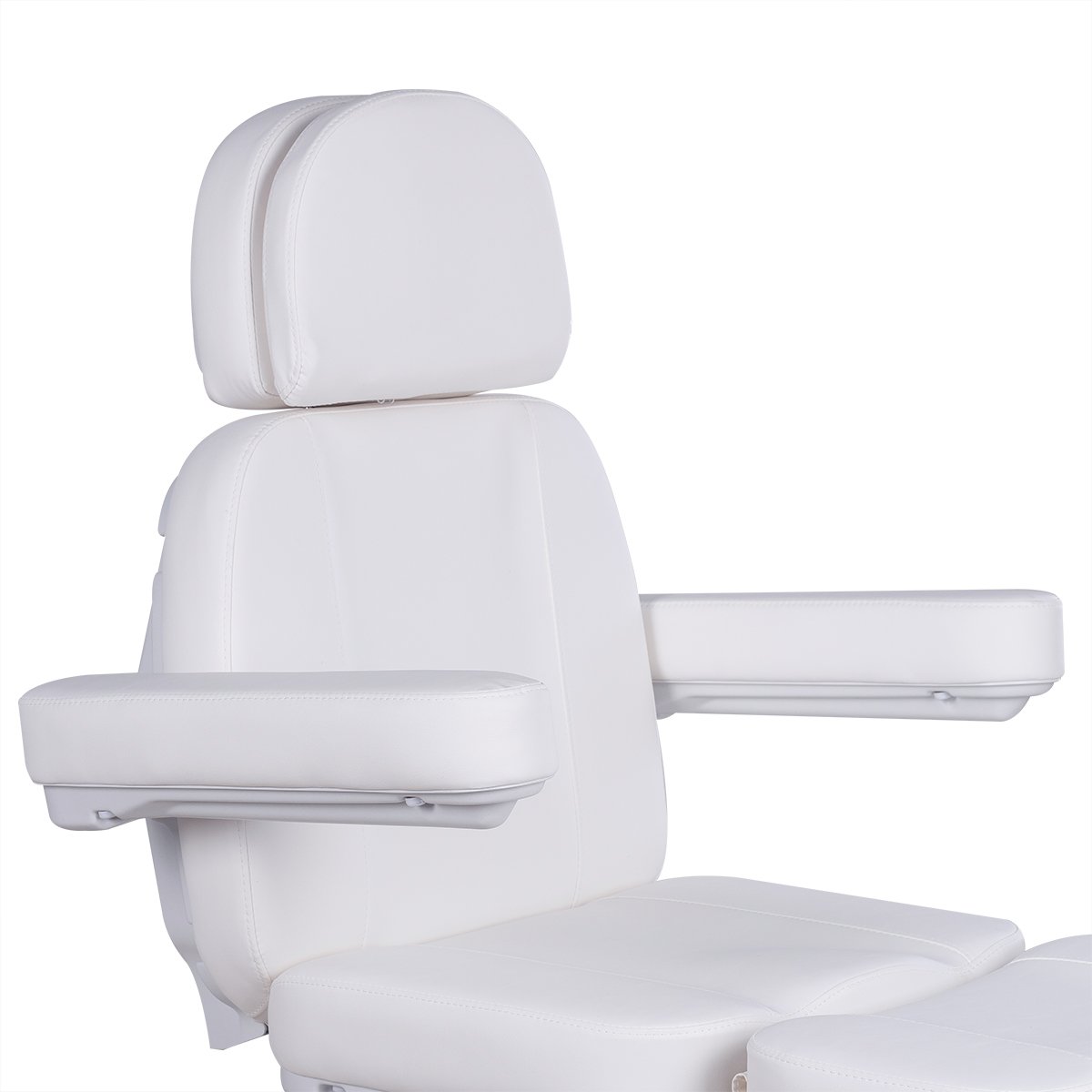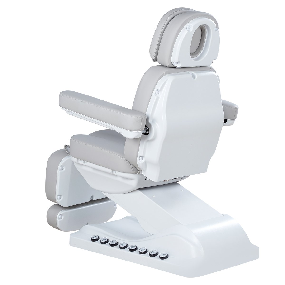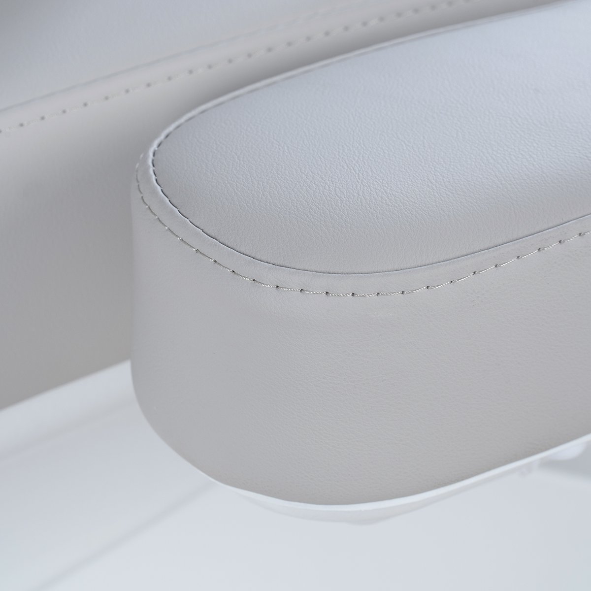 Подголовник со съемной подушкой и отверстием для лица — подходит не только для косметологии, но и массажа, а съёмные и синхронно регулируемые подлокотники поддержат руки в естественном положении в течении всей процедуры. Подножная часть съёмная и регулируемая, что удобно для уходовых процедур и массажа ног. Функция подогрева спинки и сиденья — эффект расслабления и полного релакса