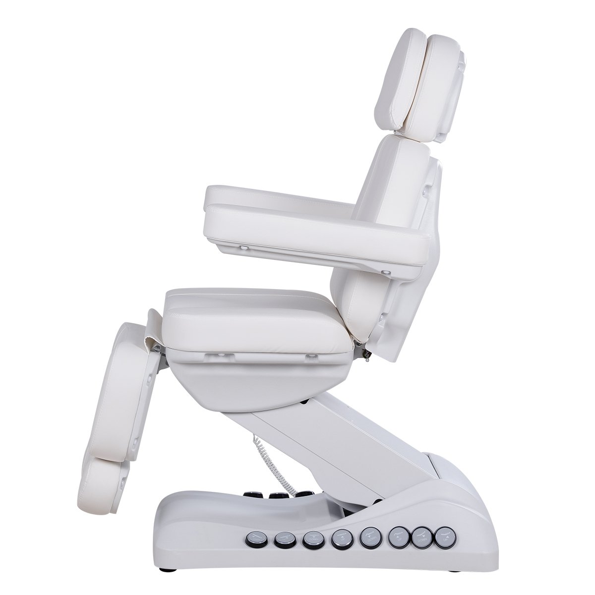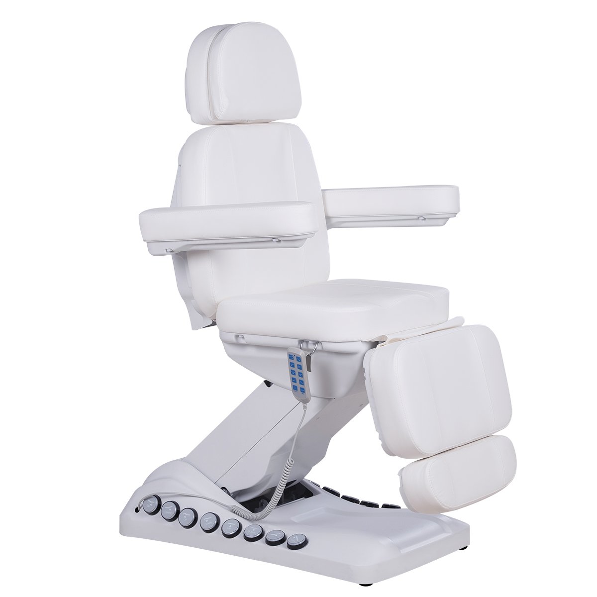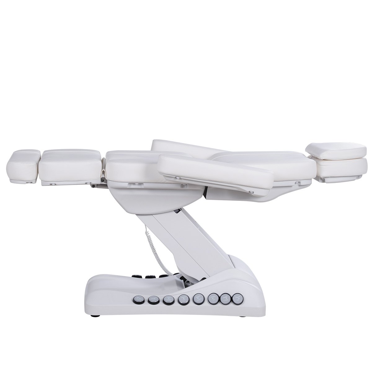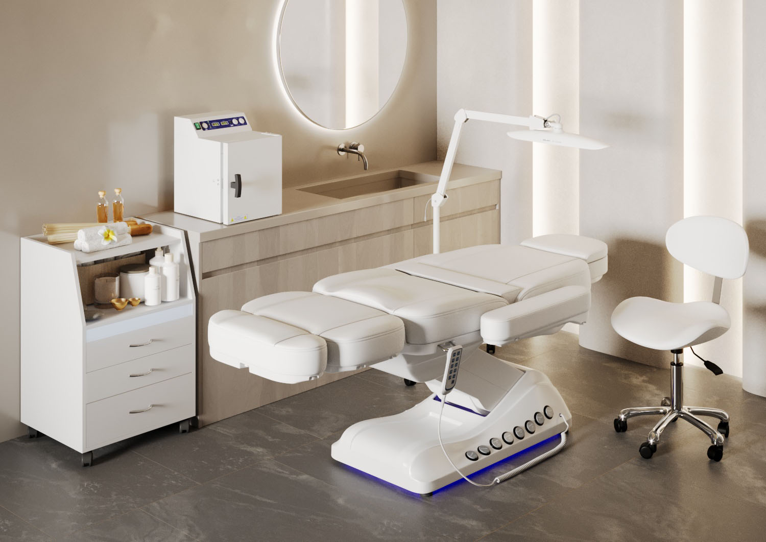 Четыре электромотора обеспечивают плавную и быструю регулировку высоты, наклона кресла, спинки и икроножной части. Инновационный ручной пульт + ножные кнопки с двух сторон кушетки с 9 режимами регулировки. Кроме того, декоративная светодиодная подсветка излучает мягкий свет, дополняющий атмосферу. Все технические детали закрыты пластиком для эстетически красивого вида