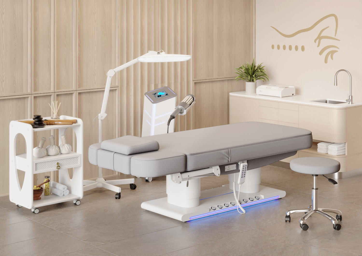 СПА кушетка МД-826 идеально сочетает в себе комфорт и функциональность. Благодаря инновационным электроприводам, клиенты могут расслабиться и наслаждаться процедурой, в то время как профессионалы могут сфокусироваться на своей работе, обеспечивая высококачественный сервис.