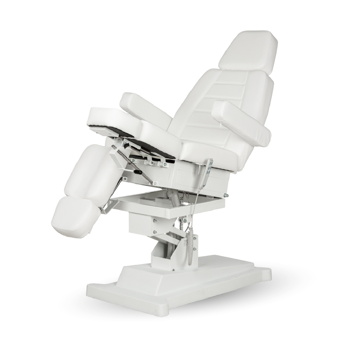 Комплектация: каркас с основанием, мягкие элементы кресла, две подножные части с дополнительными сегментами для стоп, съемные подлокотники, электрический привод (3 мотора).